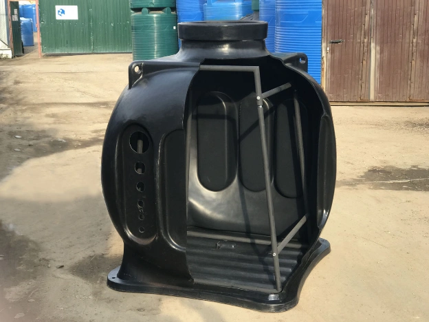 - Устанавливаем опору нижнюю на дно колодца в углубление между 1-м и 2-м ребром.