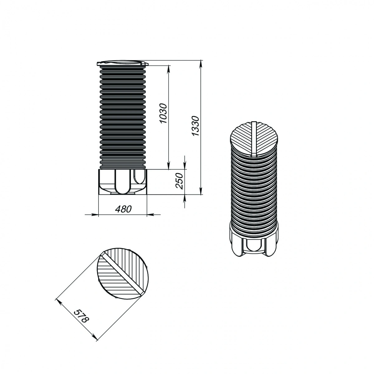 - Пластиковые колодцы имеют гофрированную наружную поверхность и гладкую внутреннюю, что исключает дополнительный пригруз или анкеровку даже при высоком уровне грунтовых вод