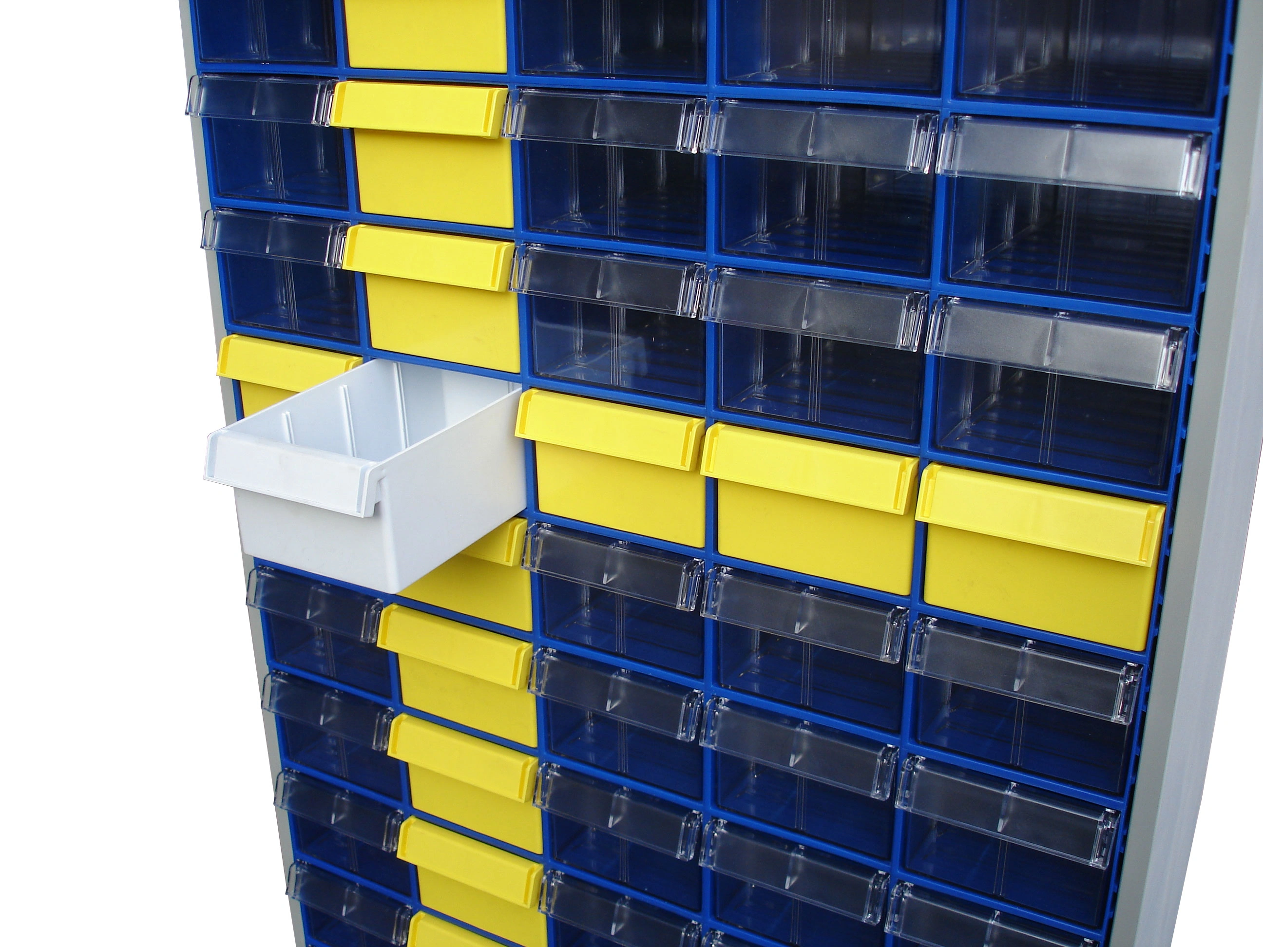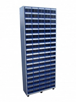Шкаф в сборе Стелла-техник С-2-90 на 90 коробов (ЛДСП) отлично впишется в интерьер любого склада, подсобного или торгового и офисного помещения. Цвет ламинированного ДСП - серый. Цвет коробов С-2 синий, прозрачный. Главная особенность шкафа – объединение большого количества коробов с определенным типовым размером. Регулируемые ножки шкафа гарантируют устойчивость шкафа даже на неровных полах. Изделие допускает одновременное применение 90 пластиковых складских контейнеров. Прозрачные внутренние короба С-2 позволяют легко находить содержимое и контролировать полноту наполнения. Внутренний короб легко вынимается для опустошения или наполнения, по принципу спичечного коробка. Он имеет рельефную структуру днища и усиленные толстые стенки. За счет этого, изделие справляются с высокими эксплуатационными нагрузками. Внутренние полезные размеры выдвижного короба: 220х123х80мм. Возможность установки одной продольной перегородки (артикул: С-2 продольная) или до трех поперечных (артикул: С-2 поперечная). Продольная и поперечная перегородки одновременно не устанавливаются. Перегородки в комплект короба не входят и поставляются отдельно. Рекомендуемая нагрузка на короб, в составе шкафа, не более 3кг.
